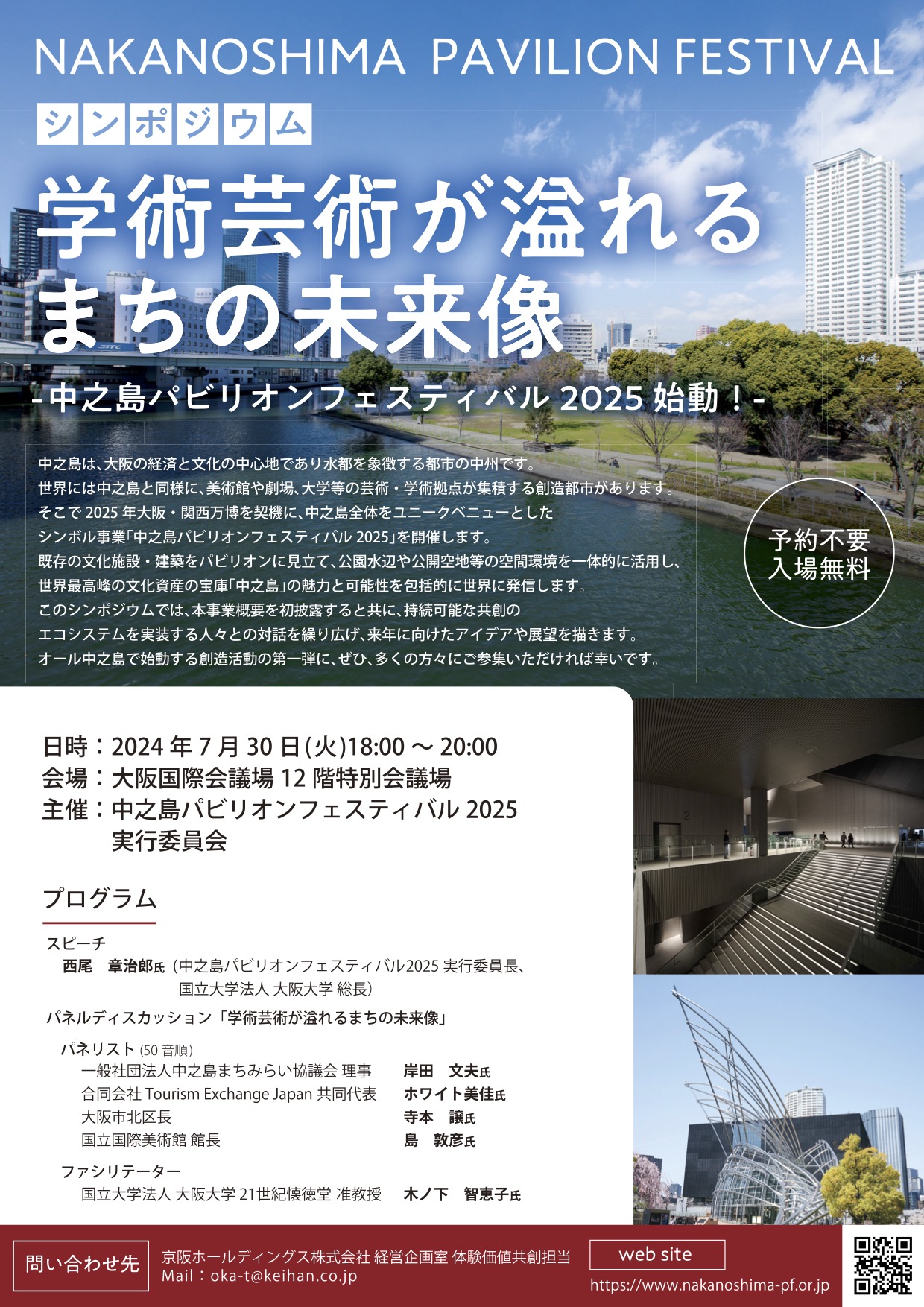 発出日時:10月8日(水) 18:30-中之島パビリオンフェスティバル2025の成果・集大成となるシンポジウムにて「中之島宣言」を発出。学術・芸術・文化・経済・観光など…